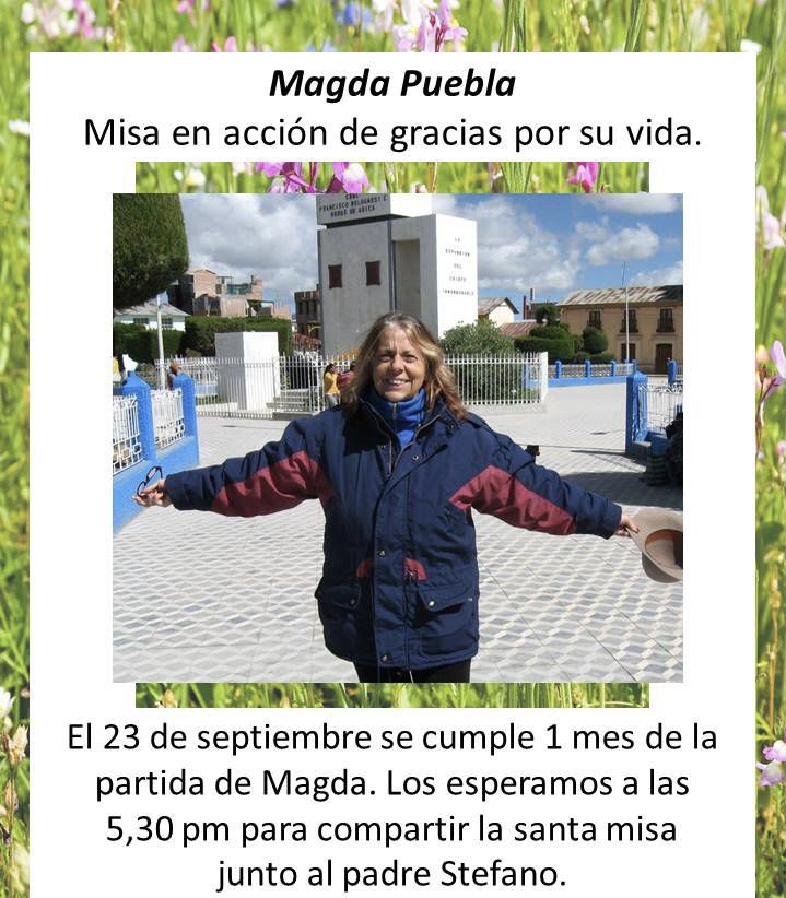 Noticias de la ComunidadMisa de acción de gracias por la vida de Magdalena Puebla, jueves 23/9 hora 17:30. septiembre 21, 2021septiembre 21, 2021 meditacioncristianauruguay Encuentro por zoom ID de la reunión: 816 2399 1559 Código de acceso: misamagda https://us02web.zoom.us/j/81623991559?pwd=VkR4VnBONFNn Comparte esto: Compartir en X (Se abre en una ventana nueva) X Comparte en Facebook (Se abre en una ventana nueva) Facebook Me gusta Cargando... Relacionado Publicado por meditacioncristianauruguay Ver todas las entradas de meditacioncristianauruguay