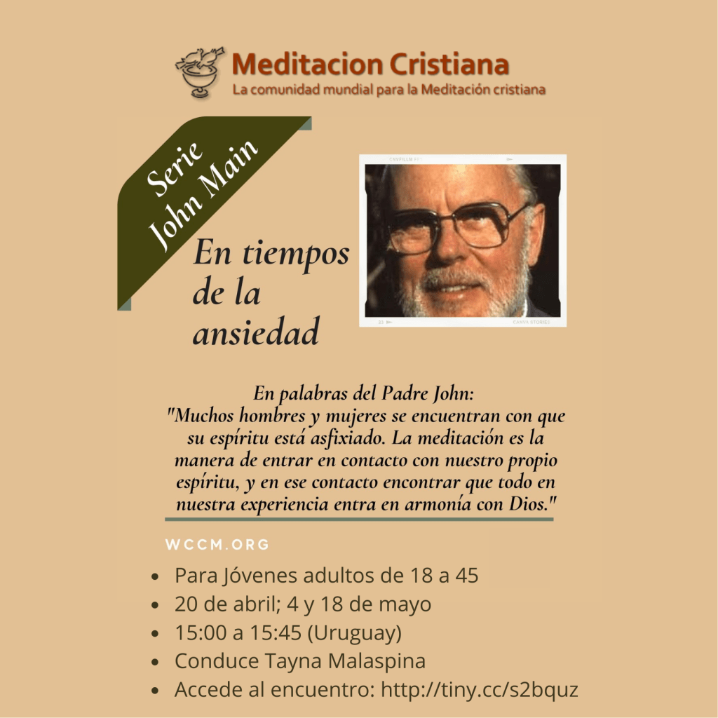 | Queridos amigos, La Comunidad ha iniciado recientemente un grupo de meditación y estudio a nivel internacional con el objetivo de reunir a gente joven (18-45 años) que desee iniciarse en la meditación o simplemente compartir con jóvenes meditadores de todo el mundo. Al frente de este proyecto se encuentra Tayna Malaspina, Oblata de la comunidad de Brasil, Coach profesional graduada en psicología social. Las sesiones tienen una duración de unos 50 minutos, son gratuitas y en ellas se escucha un audio de John Main o Laurence Freeman (en inglés) con la posibilidad de tener el texto del audio en castellano, además de realizar una meditación en grupo. La temática de las mismas seguirá la siguiente programación: • Serie diálogo interreligioso, “Jesús y Buda” (Laurence Freeman): jueves 14 y 28 de abril; 12 y 26 de mayo de 2 a 2:45 pm (hora local de España) • Serie John Main, “En tiempos de ansiedad”: miércoles 20 de abril; 4 y 18 de mayo de 8 a 8:45 pm (hora local de España). Para participar, inscribirse en la plataforma on line de la Comunidad a nivel internacional, accediendo al grupo “Jóvenes adultos” en el siguiente enlace: http://tiny.cc/o2bquz. También pueden seguir los pasos descritos en este videotutorial (en inglés) https://www.loom.com/share/768345f8ee0743e9b73488580bd56559 Se puede acceder a la sala de Zoom directamente el día y la hora de la reunión: http://tiny.cc/s2bquz Por favor, compartir la información de esta magnífica oportunidad a jóvenes que pudieran estar interesados. Desde ya agradecemos su colaboración. |