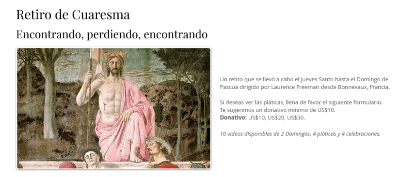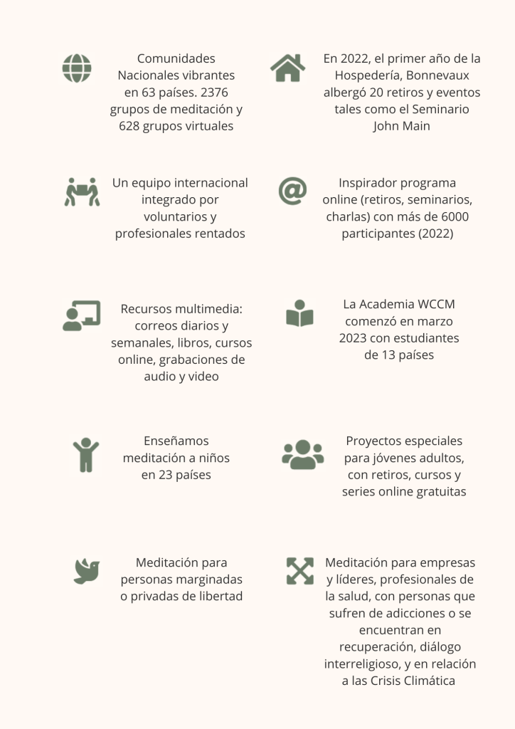 El Consejo Rector de la Comunidad ha elegido el tema de la «salud integral» para la reflexión común de la comunidad durante el próximo año. A partir de enero, Barry White y yo ofreceremos un seminario mensual online que explorará el significado y los diversos aspectos de la salud, incluidos los prácticos como el sueño y la nutrición, relacionándolo con la tradición espiritual. Esperamos que estos seminarios contribuyan a un enfoque contemplativo no sólo de esta crisis sanitaria global sino también de lo que está más allá de la crisis sanitaria.