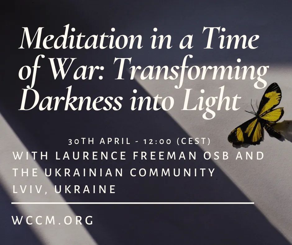 Obtener el link a la reunión en https://wccm.org/events/meditation-in-a-time-of-war-transforming-darkness-into-light/